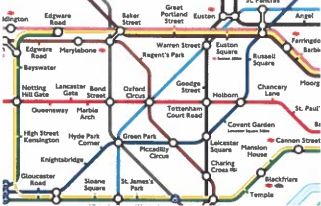 allows for people who are travelling to easily be able to tell where they are going and which train to catch, but is not the actual positions of the rail lines.